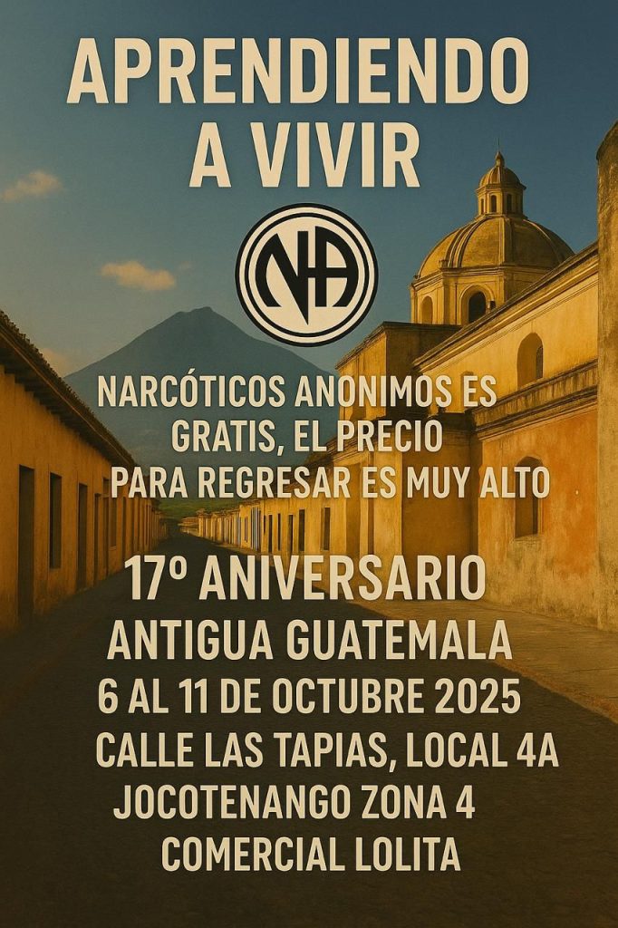 © 2019 Narcóticos Anónimos - Todos los derechos reservados. Este sitio no está endosado por la Oficina de Servicio Mundial de Narcóticos Anónimos. Es un servicio ofrecido a la comunidad de la Región de Guatemala. Los nombres, las marcas y los logotipos de la confraternidad de Narcóticos Anónimos pertenecen a NAWS, Inc. All trademarks property of NAWS, Inc. 2007. All rights reserved. http://www.na.org